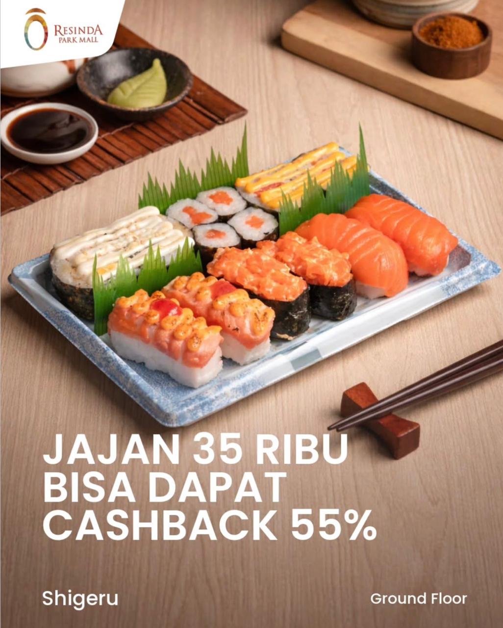 Pas banget nih lagi ada promo Milad BSI di Shigeru. Kamu bisa dapetin Cashback 55% khusus buat pengguna BYOND by BSI. Cukup jajan min. 35rb udah bisa dapet cuan balik!