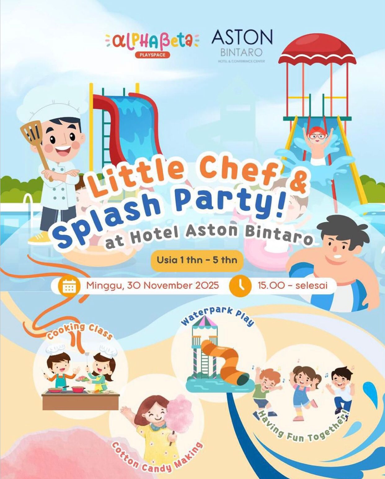 *#Batch5 – Little Chef & Splash Party Alphabeta x Aston Bintaro !! 🧑‍🍳🛝🎊*